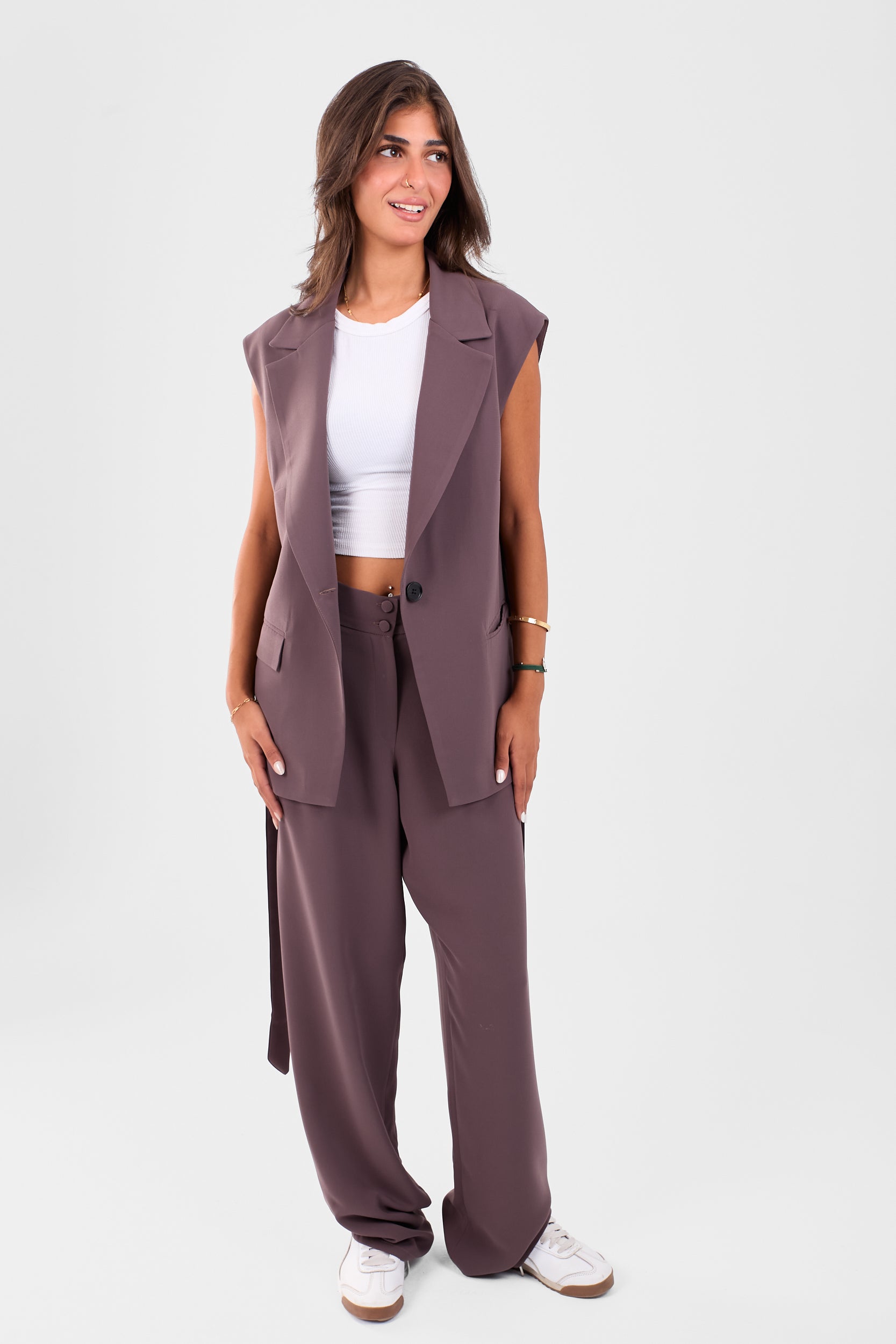 The perfect addition to your all-season wardrobe — a chic and casual sleeveless blazer. Designed for versatility and comfort, its sleeveless cut makes it ideal for layering and for warmer days. Pair it with a blouse and trousers for a smart look, or with jeans and a t-shirt for effortless off-duty style.